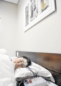 Ao monitorar as ondas cerebrais, a avaliação define as fases do sono, posição e movimento, respiração, frequência cardíaca etc. Ela indica distúrbios comuns, como apneia do sono, drama da aposentada Maria de Lourdes Barbosa Cracco (foto, E), 69 anos. No seu quinto exame, ela testava um CPAP, um aparelho que facilita a inalação de ar.