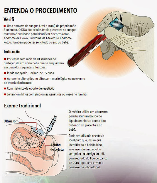 O preço ainda é proibitivo para a maioria das mulheres: cerca de R$ 3,5 mil e realizado por vários laboratórios, podendo ter nomes distintos. É indicado para mulheres com mais de 35 anos, que tenham ocorrência de anormalidade genética na família ou no caso de ser identificado acúmulo excessivo de líquido na região da nuca do feto durante o exame de translucência nucal.