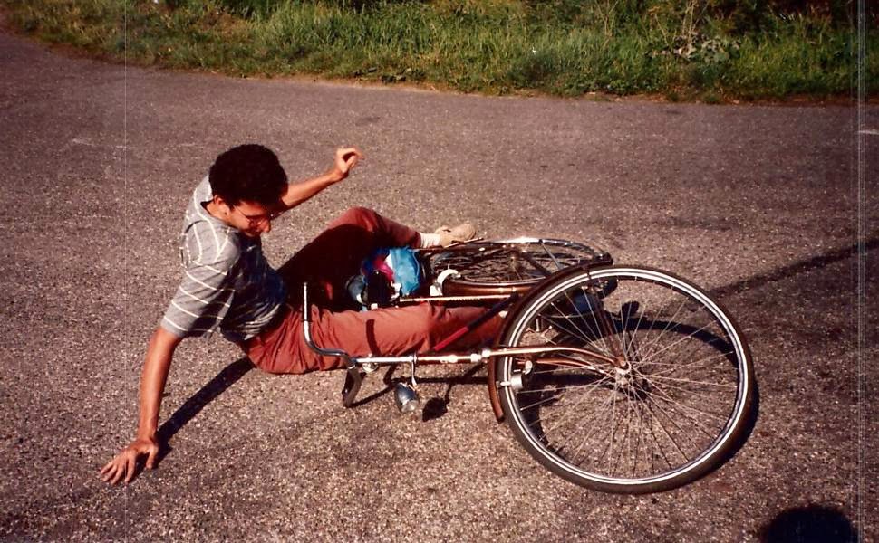 amigo de bicicleta pela Holanda. Amarrava o pé que estava sem força no