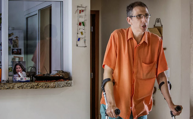 no chão: as sequelas da doença, que tiram a força das pernas, já se